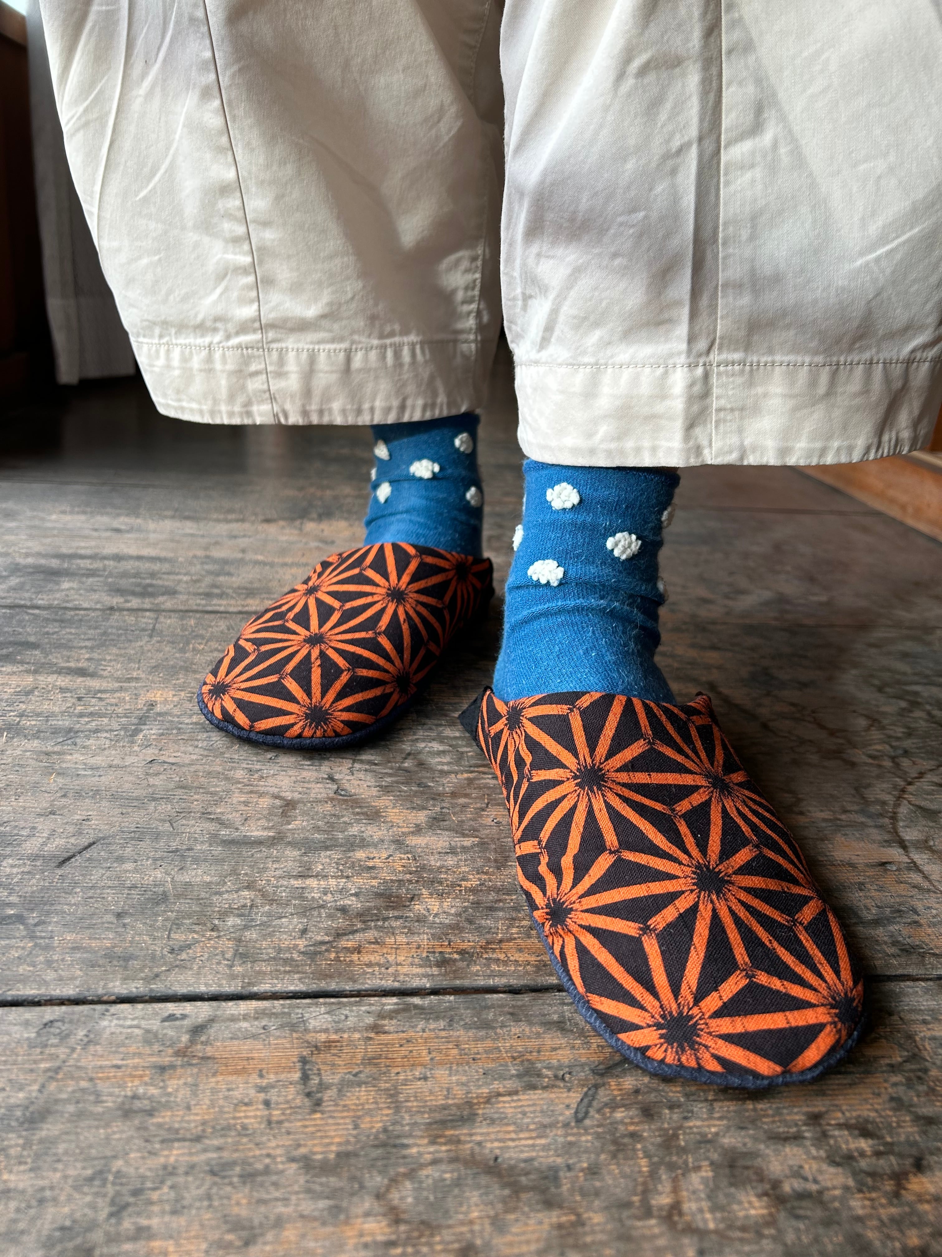 半幅帯やバブーシュ、和の小物へと仕立て直しています。